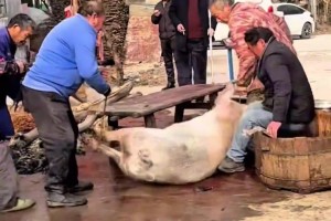 村民抓猪,男子不慎掉盆,网友调侃烫错了